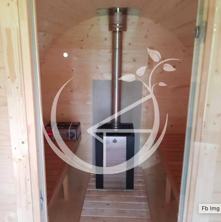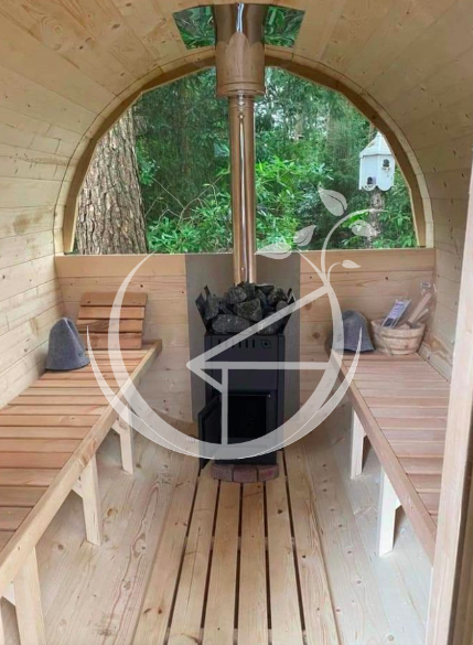 - Barrel sauna made from pinewood (thickness 45 mm, diameter 210cm without chimney)
